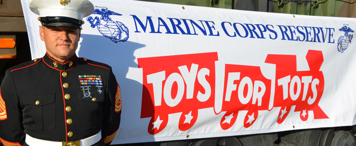 From November first to December thirteenth, we encourage our customers to drop off new, unopened, and unwrapped toys at any of our locations. Our corporate office will serve as a toy collection point, and all gifts dropped off at offices other than Atlanta will be shipped to headquarters. Shortly after the collection period, a Marine, accompanied by the Toys for Tots volunteers, will pick up the donations, which will be delivered to a child on Christmas morning.